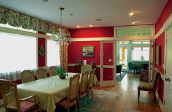 Principal residence of a couple of "empty nesters" in north shore suburban Chicago. House form derives from pyramidal program where most rooms needed to be on first floor. Plan is arranged around a central service core with a "donut" of circulation attaching all the major spaces into a loop. Family room, living room and breakfast room are lofted to allow for better daylight penetration and a readable hierarchy among the principal living spaces.
